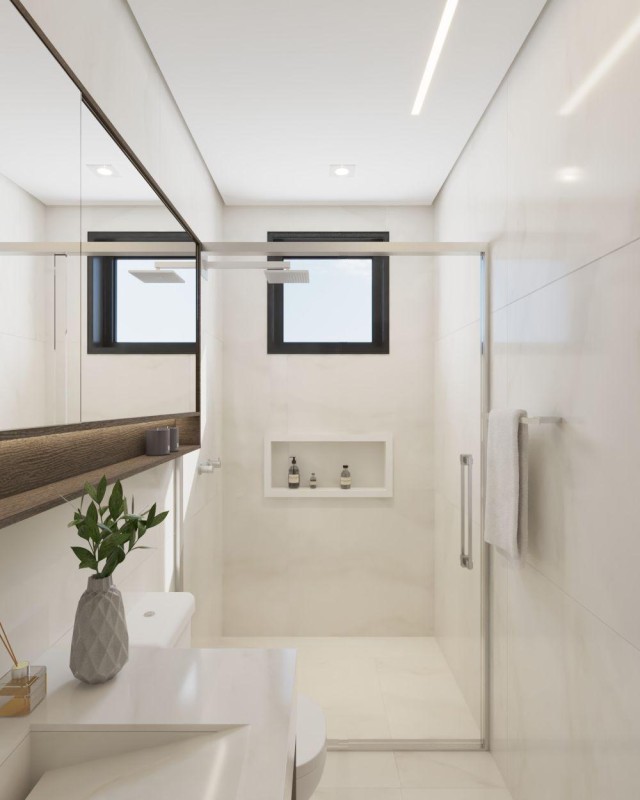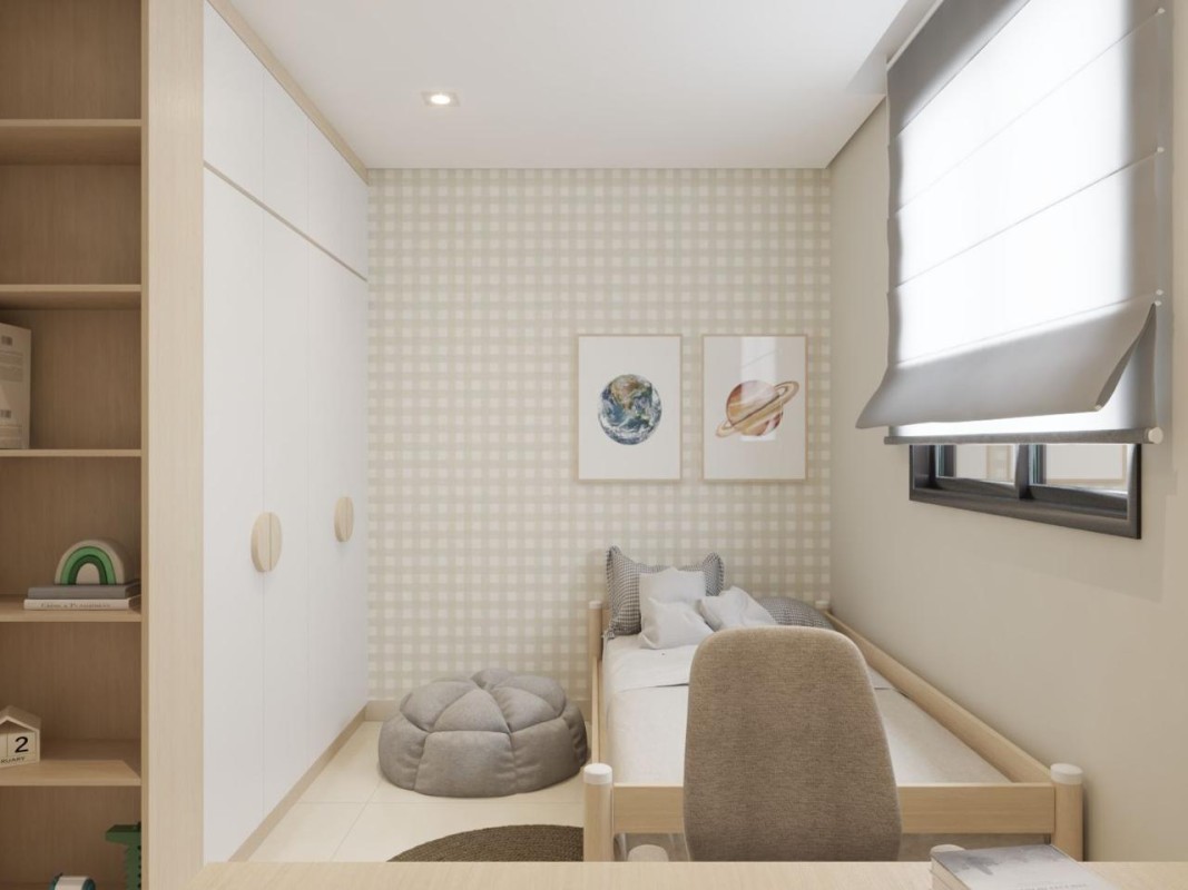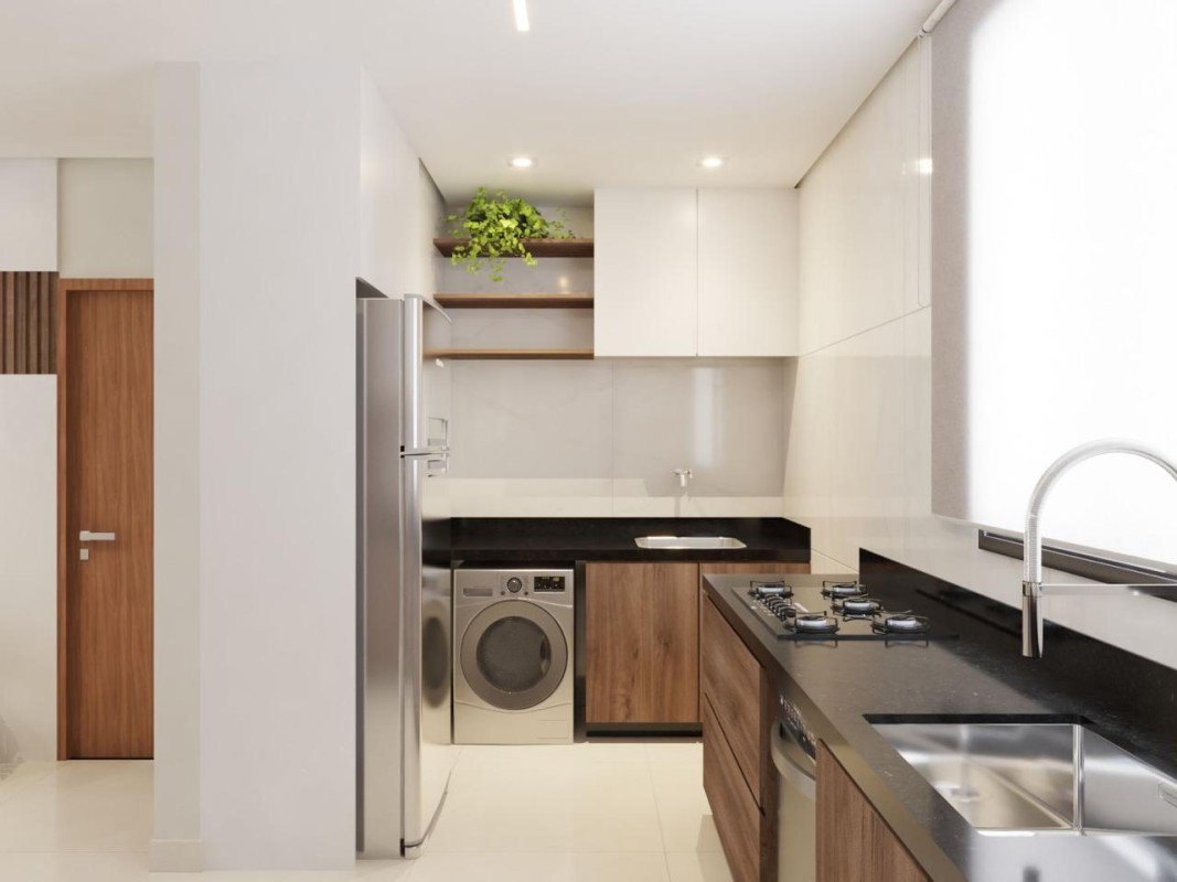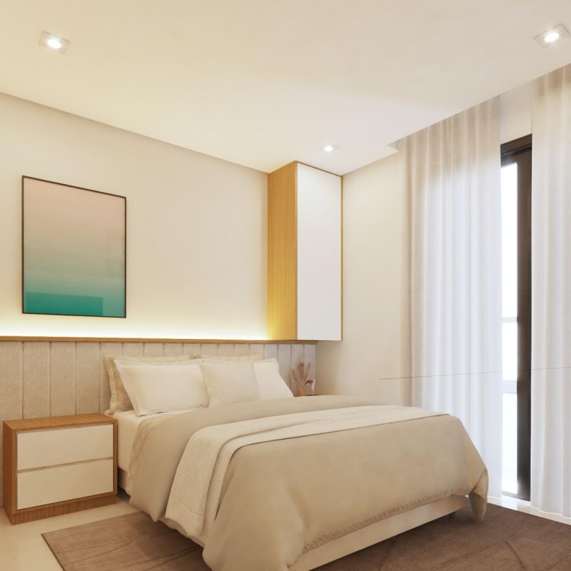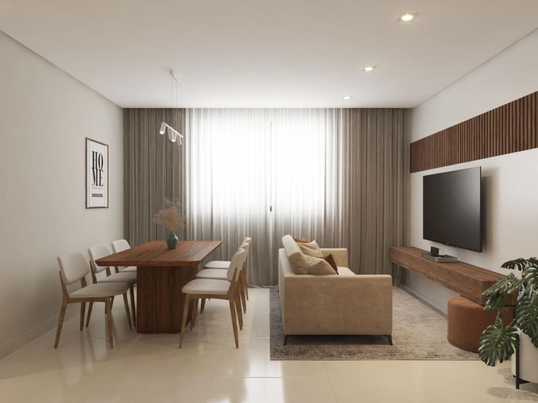 Apartamento com 86,92 m² de área construída total aproximada, composto por 3 quartos sendo 1 suíte com varanda, banho social, sala para dois ambientes, cozinha e área de serviço, espaço para 02 (duas) vagas em linha .