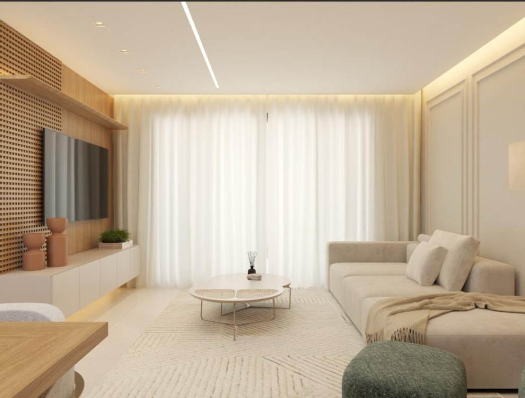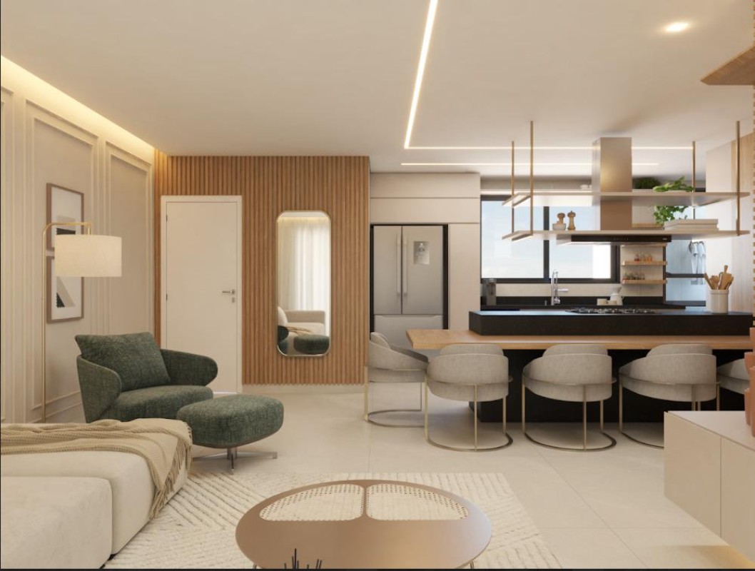 Acabamento de alto padrão com rebaixamento em gesso, pisos em porcelanato, pré-disposição para ar-condicionado, medição de água e gás individual.