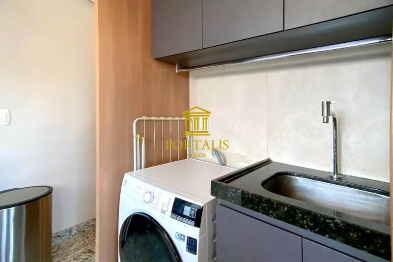 * Cozinha em conceito aberto, com armários e bancada em granito.