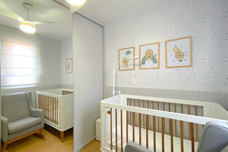 02 quartos com armários planejados e piso em laminado de madeira, sendo 01 suíte com ar-condicionado.