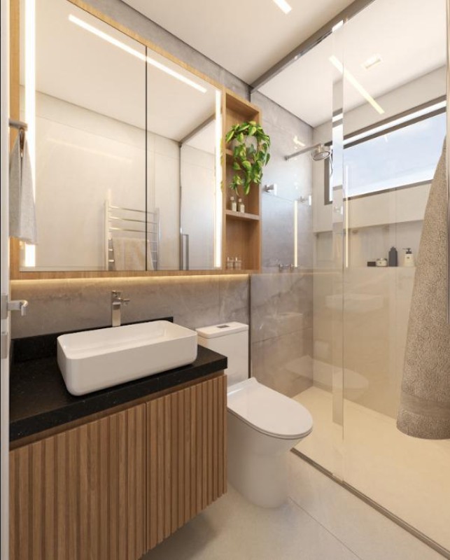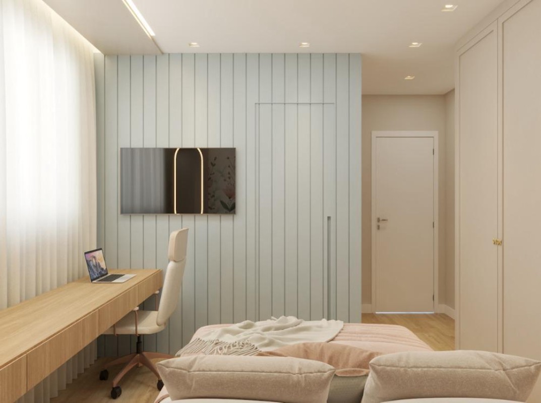 Acabamento de alto padrão com rebaixamento em gesso, pisos em porcelanato, pré-disposição para ar-condicionado, medição de água e gás individual.
